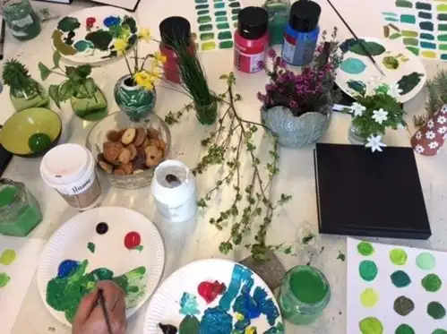 Sammen ser vi på muligheder og glæder ved at beskæftige sig kreativt og frit. Det er skønt at blive opslugt af at skabe kunst, som man ikke vidste, man kunne lave. Man opdager at alle har hver sin særlige udtryksform.